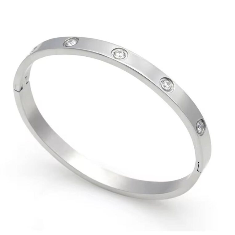 Cartier Inspired Silver Rhinestone Bracelet- stainless steel anti tarnish – waterproof bangle style bracelet