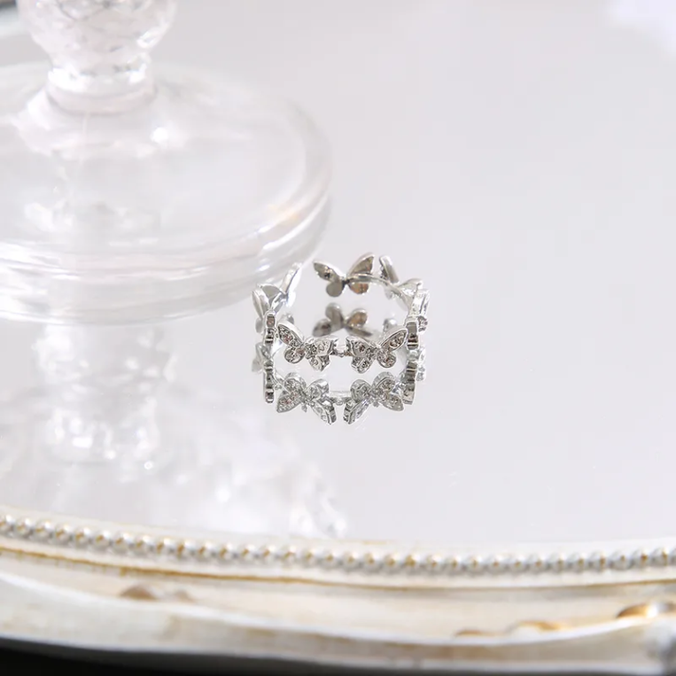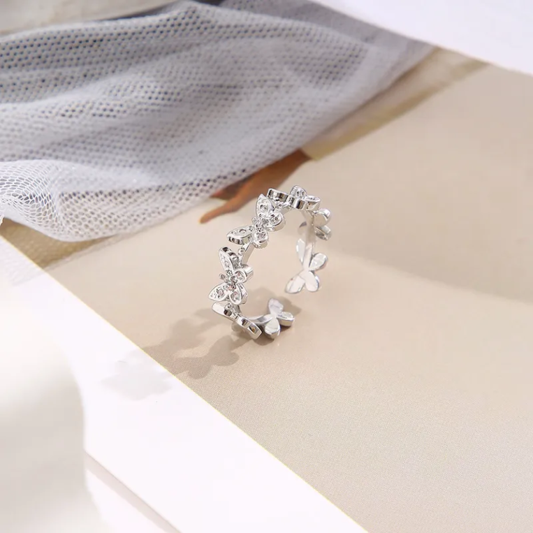 Korean Silver Butterfly Adjustable Rhinestone Ring