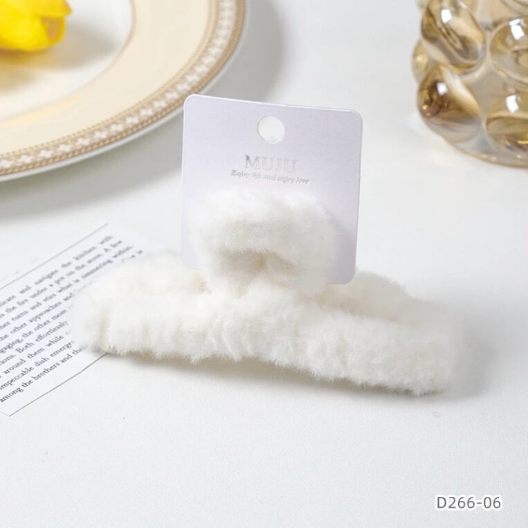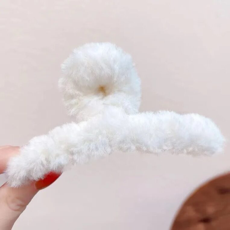 Plush hair clip white